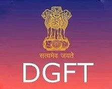 Indian government emblem with the Lion Capital of Ashoka and 'Satyamev Jayate' written in Hindi above the acronym DGFT on a gradient background